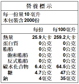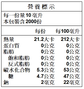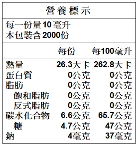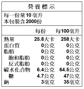 成份:釀造醋、水、果糖(非基改)、純檸檬汁。