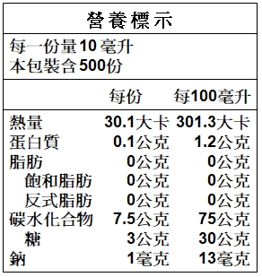 成份:蔗糖、二砂、水 保存方法:請置放於陰涼處